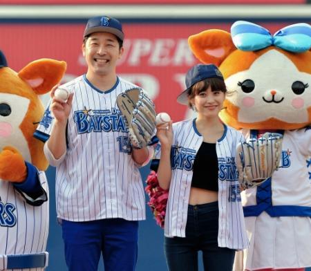 高橋愛&あべこうじ夫妻 横浜で始球式