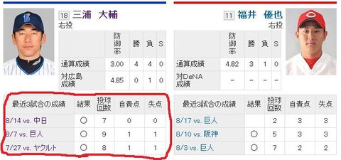 08/21 DeNA対広島 先発三浦