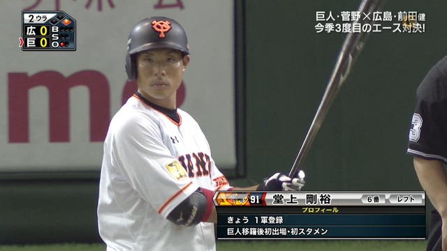 移籍後初昇格の巨人・堂上剛裕が6番レフトでスタメン!