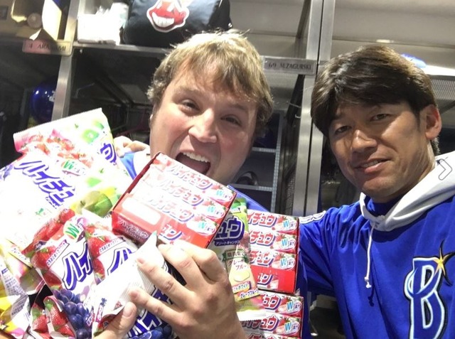 ザガースキー、三浦にハイチュウ大量にもらってウキウキ