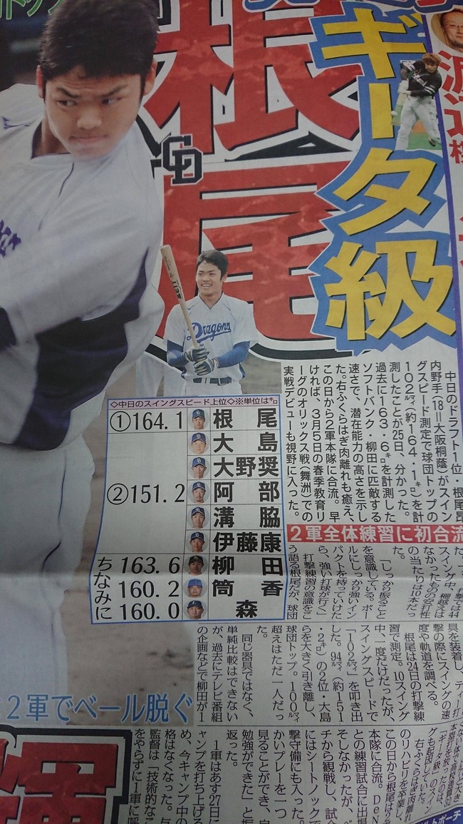 根尾 ギータ級 18歳超速スイングスピード164キロ超