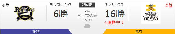 バファローズ対ホークス 山本-高橋礼 15:00~(京セラドーム大阪)今季最終戦