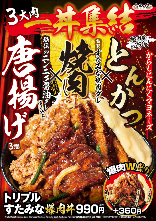 伝説のすた丼屋さん、なんと鶏と豚と牛を全て載せた丼を販売してしまう……