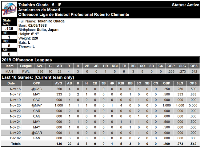 T-岡田(WL).136(22-3) 1本 5打点 OPS.542