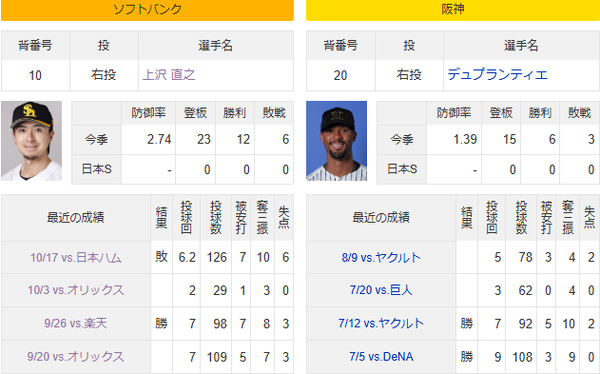 10/26(日)予告先発 上沢直之×デュプランティエ 「初の日本シリーズのマウン[...]
