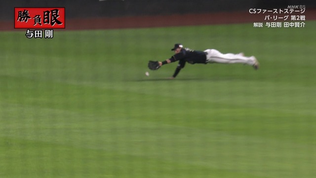 センター廣岡、果敢にダイビングも届かず 2点タイムリーになってしまう