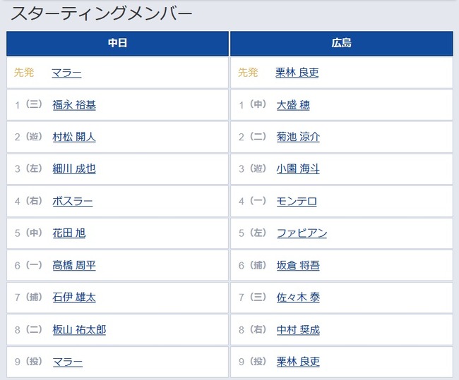 スタメン・打順速報|試合実況|4/15 18:00開始