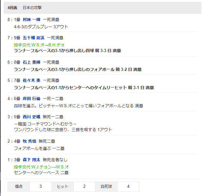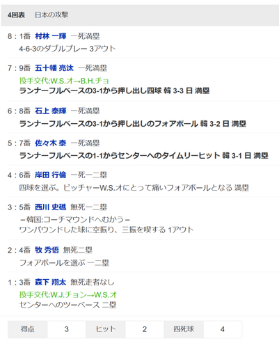 侍ジャパン、3点先制されるも直後に韓国投手陣が自滅 同点に追いつく