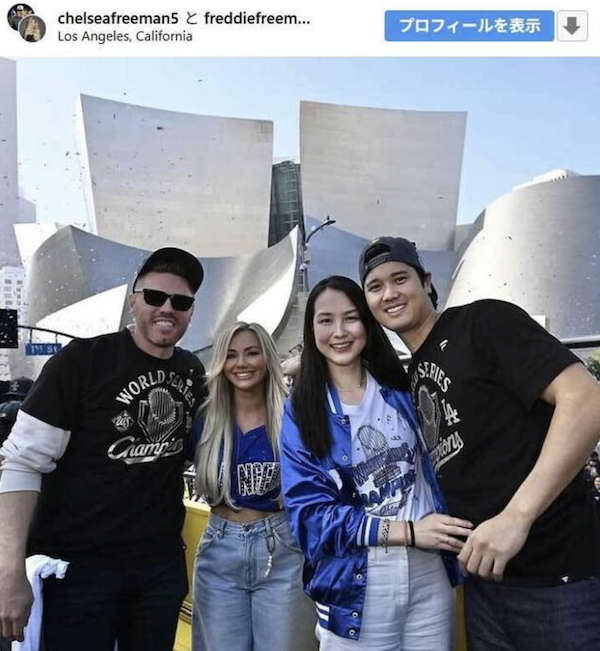 大谷翔平(191cm)フリーマン(196cm)大谷真美子(180cm)フリーマン[...]