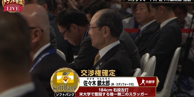 スタンフォード大・佐々木麟太郎、2球団がまさかの1位指名!ソフトバンクが交渉権獲[...]