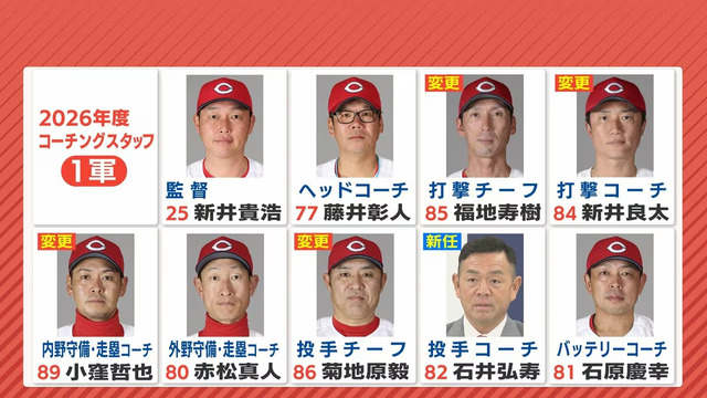 カープ『打撃コーチの外部招聘なし』←2026年コーチ陣に賛否