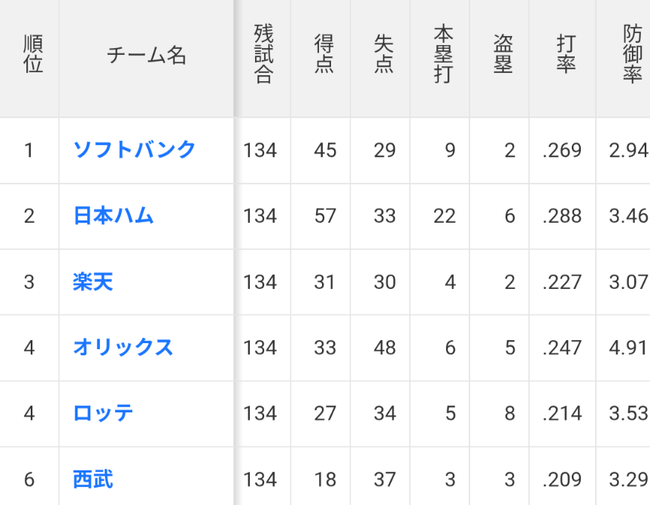 DeNAヒュンメル .208 0本 3打点 出塁率.406 OPS.656