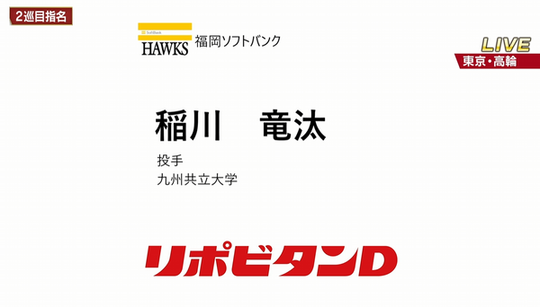石垣元気「ソフトバンクに1位指名される夢を見た」→結果