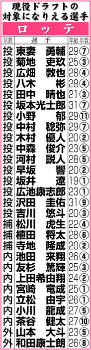 ロッテ現役ドラフトの対象になりえる選手一覧(日刊スポーツ)