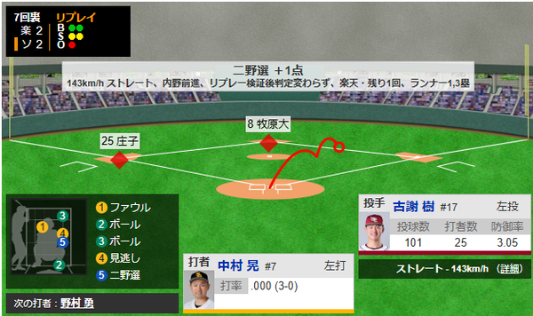 山川穂高のタイムリーヒットで同点!!近藤の盗塁が生きる