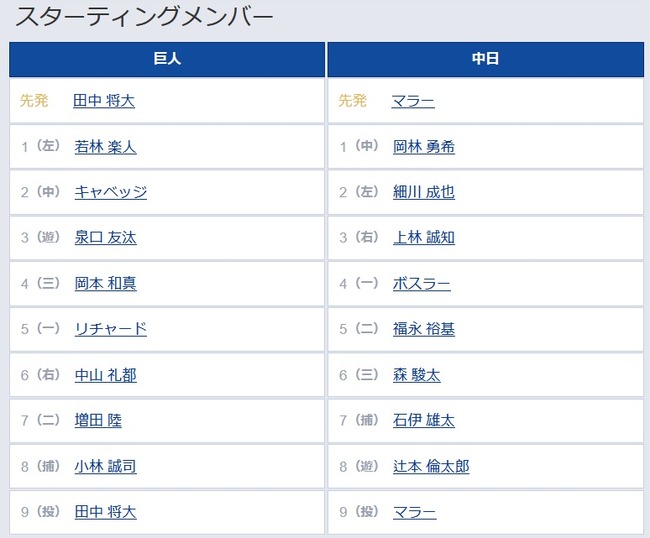 8(捕) 小林 誠司 9(投) 田中 将大
