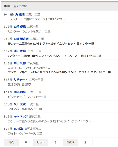 巨人、初回2アウト満塁から中山礼都の2点タイムリーで先制!!!!!!!!!!!!