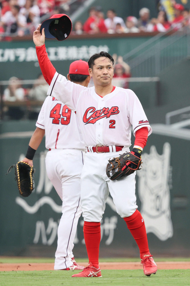 カープ田中広輔、涙こらえ後輩にエール「来年は球場を満員にする野球を」