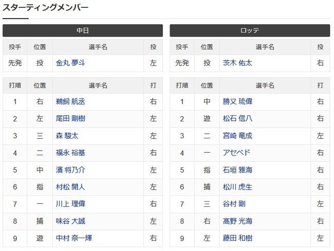 中日 2-2 ロッテ