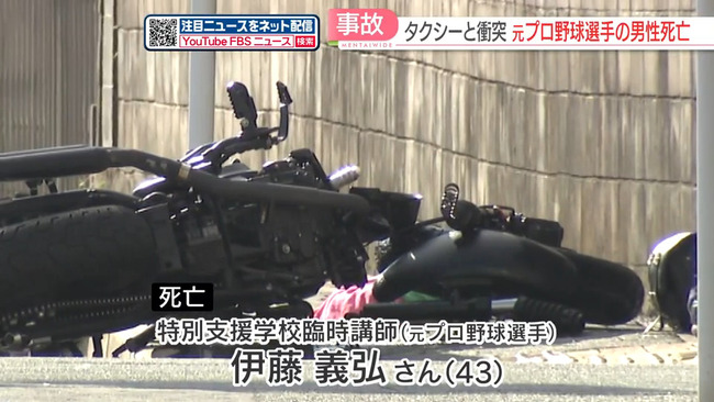 タクシーとバイクが交差点で衝突 バイクの元プロ野球選手・伊藤義弘さん(43)が死[...]