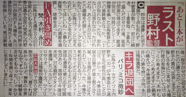 広島 緒方新監督が14日にも誕生へ!生え抜き昇格は既定路線