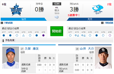 日ハム対楽天 試合実況 吉川光夫が先発 in札幌ドーム 18:00〜