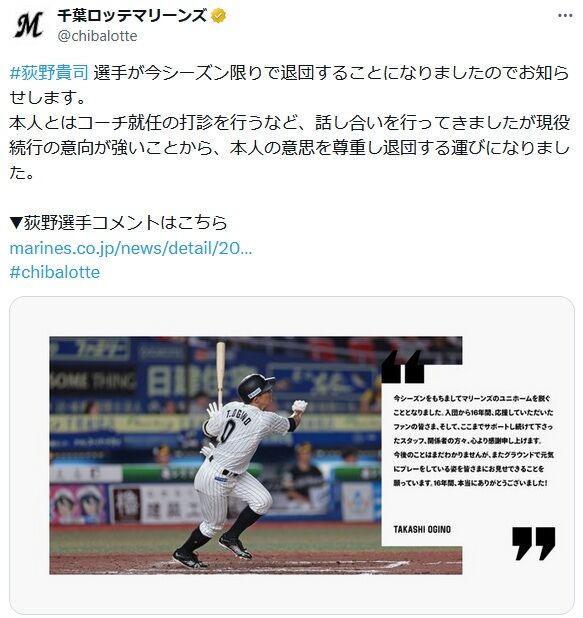ロッテ荻野貴司の退団でXのロッテファン大荒れ