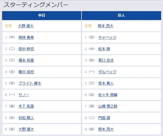 5(三) 坂本 勇人 7(捕) 山瀬 慎之助 8(二) 門脇 誠