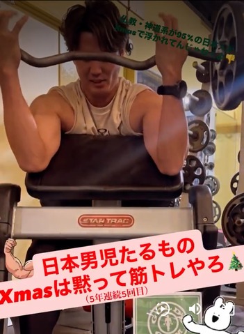 藤浪晋太郎、インスタ更新「Xmasは黙って筋トレ」「仏教、神道系が95%の日本人[...]