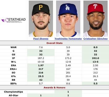 ナ・リーグサイ・ヤング賞はスキーンズが受賞!山本由伸は1位、2位票が0で3位に