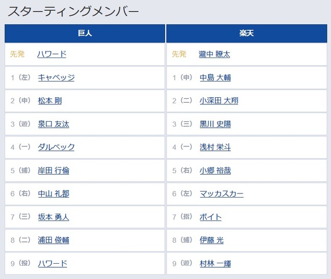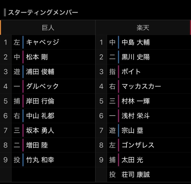 巨人の開幕スタメン、あまりにも弱い