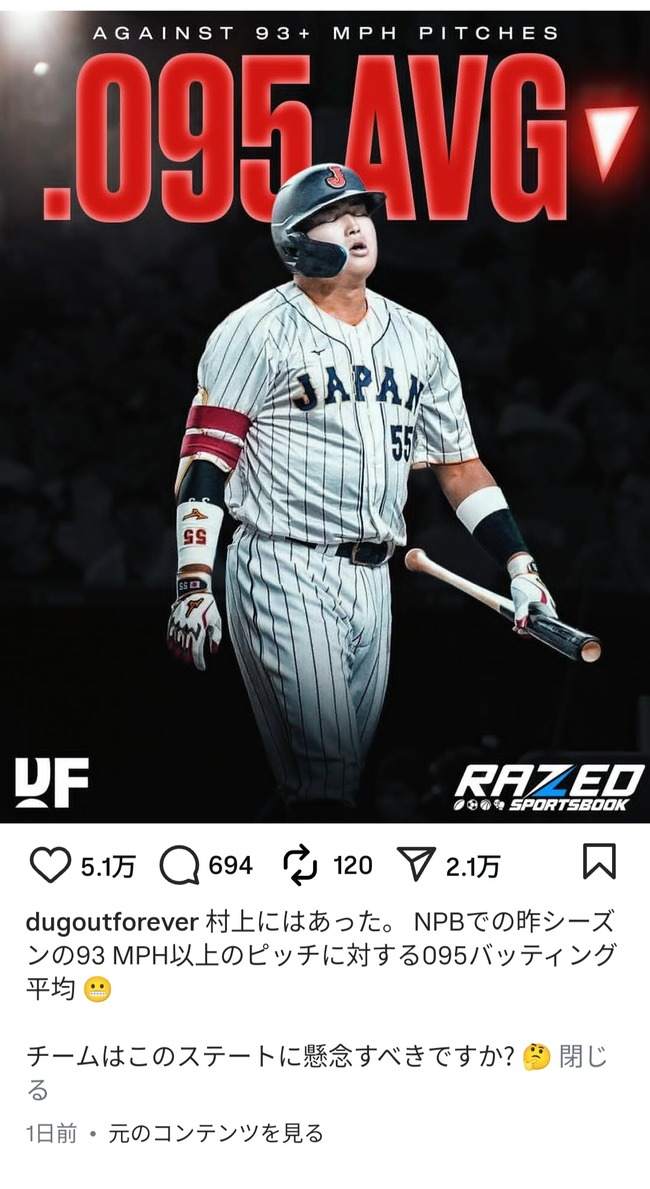 今日の侍JAPANの練習試合、スタメン予想のポジションがワイ的にめちゃくちゃだと[...]