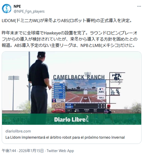 ドミニカでもABS(ロボット審判)の正式導入を決定