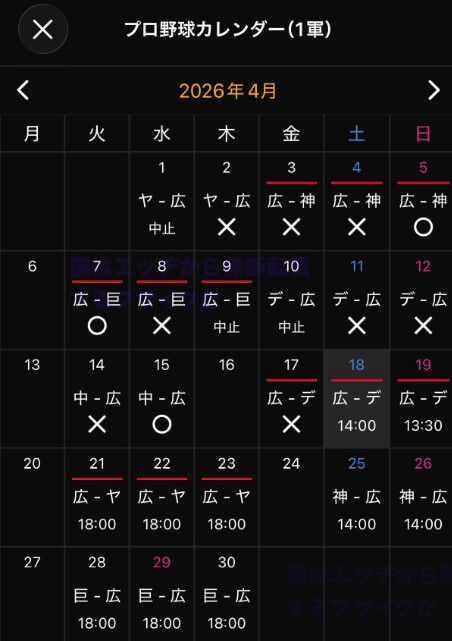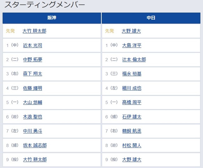 スタメン・打順速報|試合実況|4/18 14:00開始