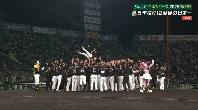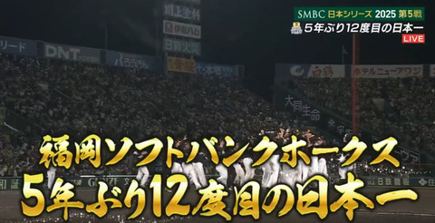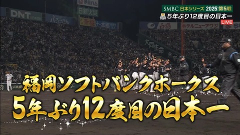 ソフトバンク、5年ぶり12度目の日本一達成!!!!