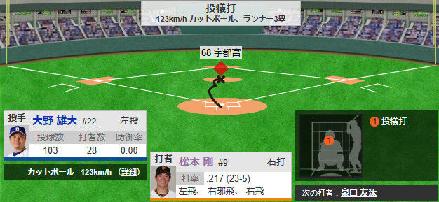 巨人阿部監督、9回表1点ビハインドの無死ランナー2塁で松本剛に送りバント