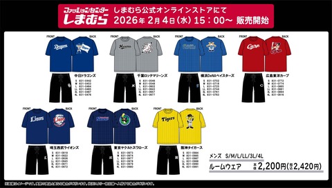 しまむら×NPB球団コラボパジャマ、2月4日からオンラインストアに販売開始