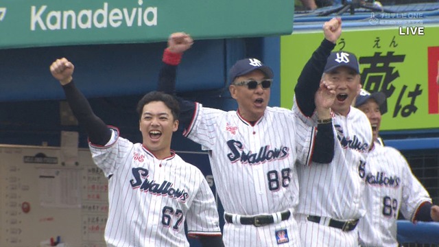 池山監督大はしゃぎ! 怒涛の連打で一挙7得点!5-0を大逆転wwwww