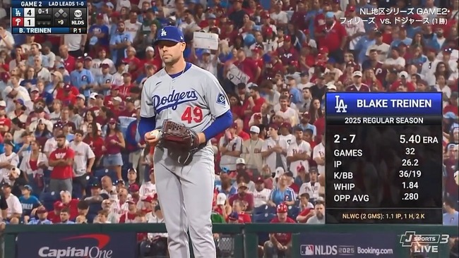 ドジャースが敵地で2連勝、NLCS進出に王手! 9回に救援トライネンが1点差にさ[...]