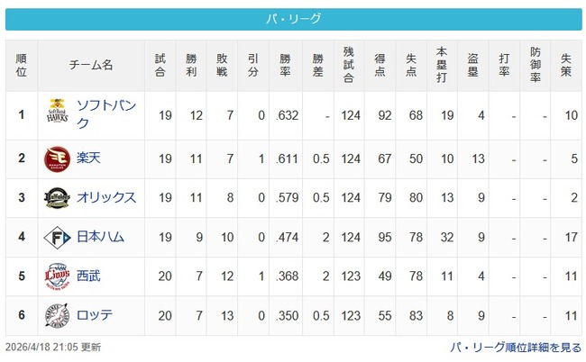 4月18日 楽天9-1ロッテ 先発田中が5回7失点と炎上…打線はチャンスを作るも[...]