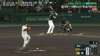 ソフトバンク柳田、阪神石井から同点2ランホームラン!!!!
