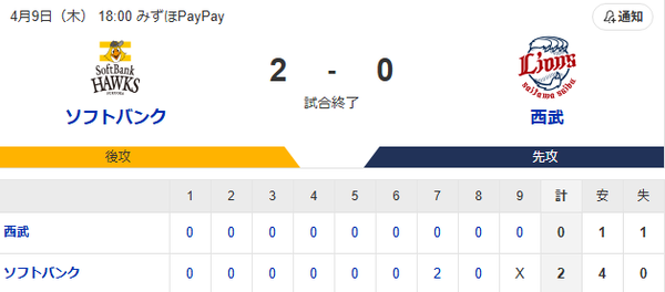 西武スタメン 先発:菅井信也(2026.4.9)