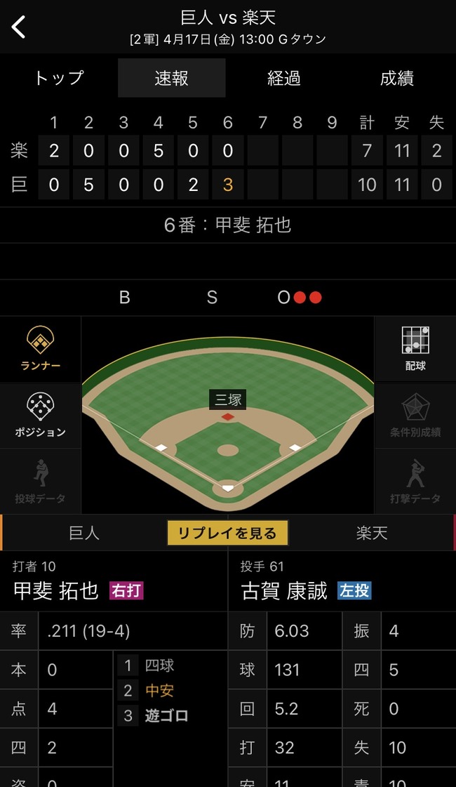 スタメン・打順速報|試合実況|4/17 18:00開始