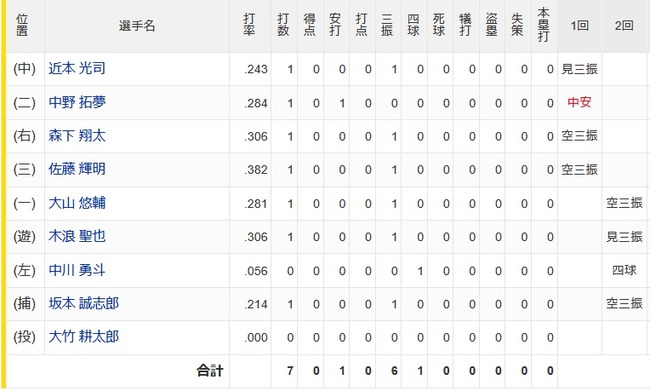竹田(De)0勝2敗 防御率7.56 8.1回5奪三振 WHIP1.68