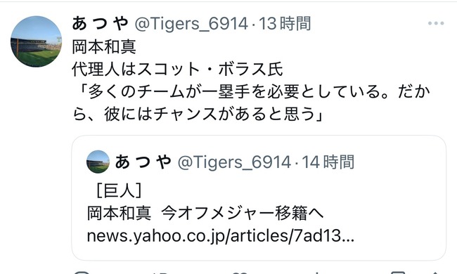 巨人岡本メジャー熟考、柳則本マエケン獲得調査wwwwwww