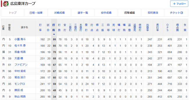 ロッテ櫻井ユウヤ .261(119-31) 1本 31三振 OPS.635(2[...]