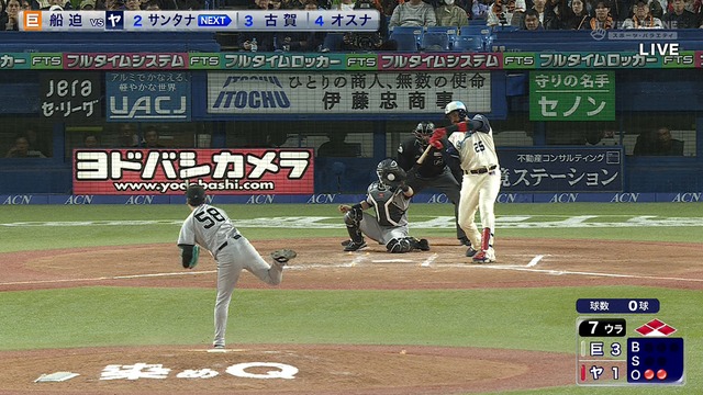 ヤクルト、7回裏2アウト満塁からサンタナが押し出し四球を選び1点差に詰め寄る!![...]