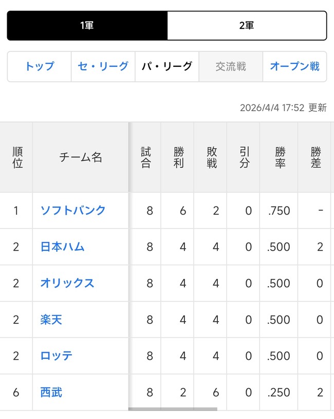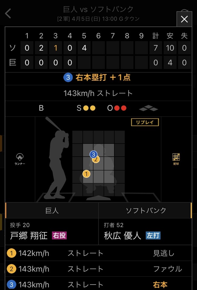 スタメン・打順速報|試合実況|4/5 13:00開始