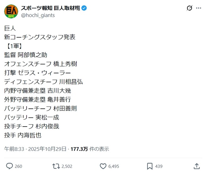 ウィーラー、巨人(日本の伝統球団)の一軍打撃コーチまで上り詰めるwww