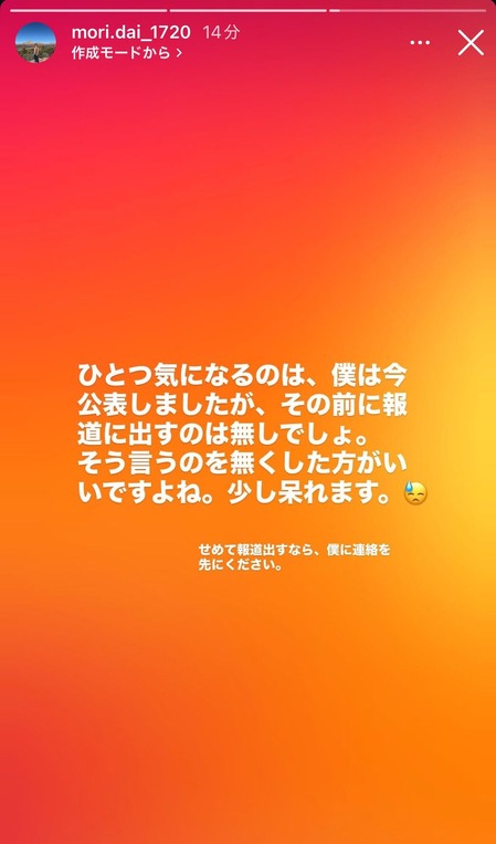 元阪神・森木、お気持ち表明「僕が発表する前に報道を出すのは無しでしょ」